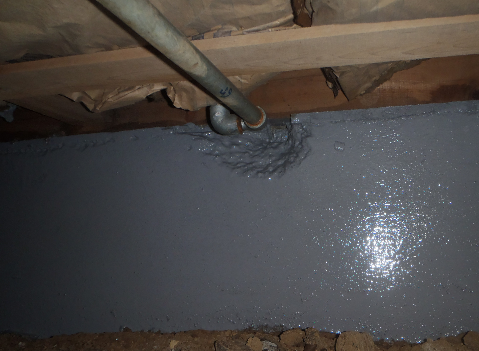 クラックなどが入り弱くなった基礎コンクリートの表面を強くするためにタックダインを塗ります。