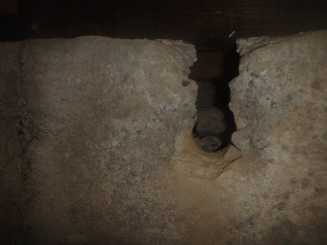 配管を通す際に穴をあけておりそこからひび割れが広がっていました。