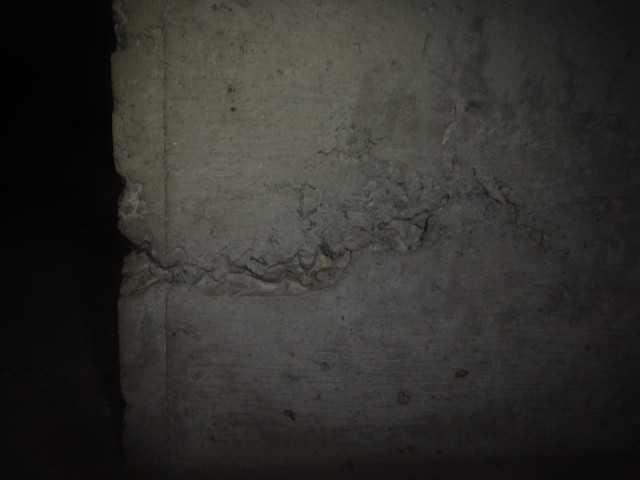 実際に点検してみると、このように内側の基礎コンクリートにも無数のひびがはいっていました。