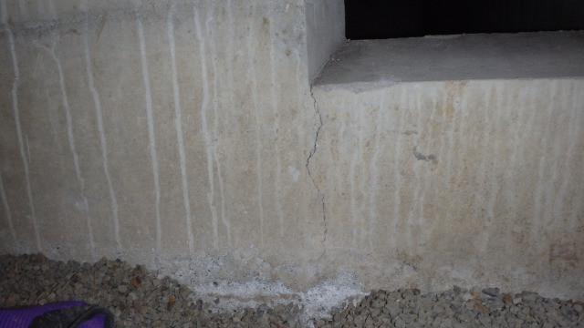 お家の内側の基礎コンクリートに外側よりも大きなひび割れがありました。