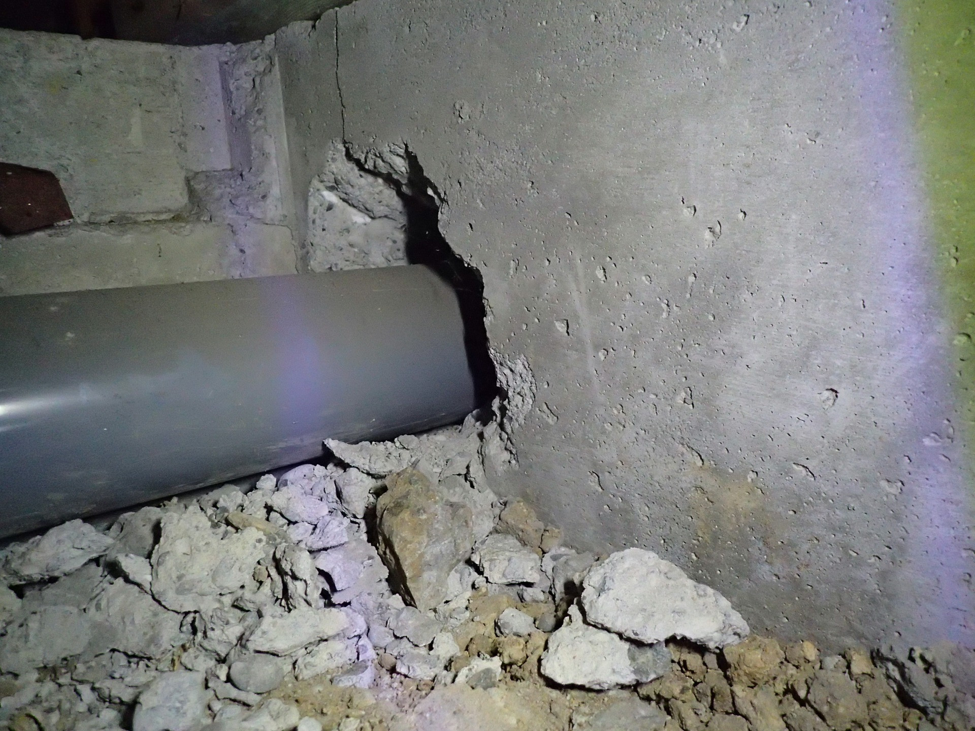 こういった過去のリフォームで基礎コンクリートに穴を開けてしまっているケースは多々あります。